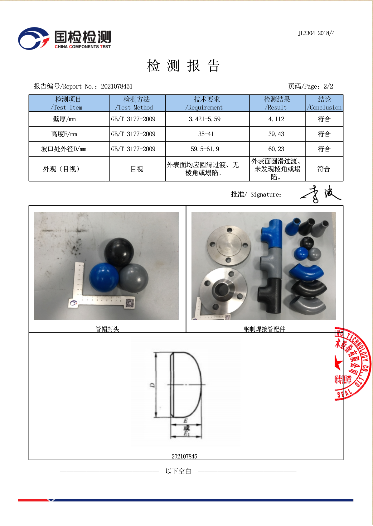 钢制焊接管配件管帽/封头_检测报告_周口
