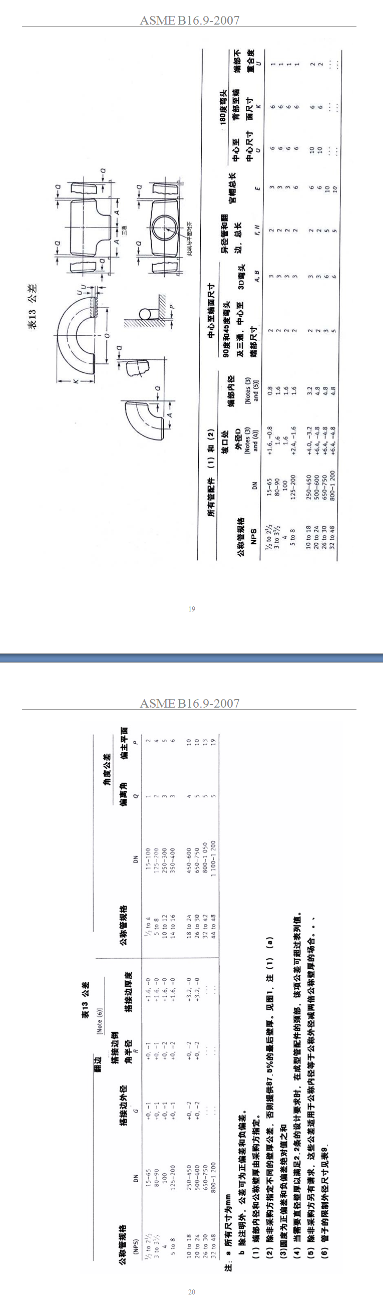 ASME 锅炉及压力容器规范第Ⅱ卷中所列出的相应标准。术语“锻轧”意指管配件是由公称管、管子、钢板或锻件制造的。由锻坯制造的管配件可只是按制造厂和采购方的协议供货。注意的管配件并不需要符合第 7 节表面外形的要求。