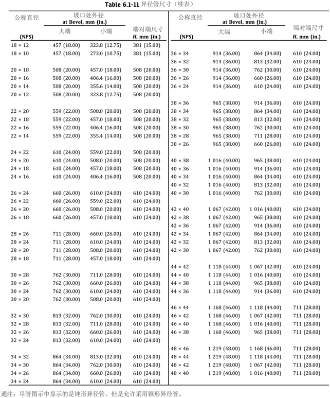 ASME B16.9-2018 异径管、大小头、变径管尺寸表