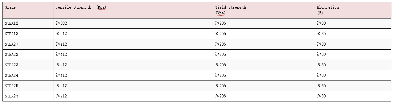The above table is only applicable for heat exchanger alloy steel pipes. The buyer can appoint the upper limit value of tensile strength. The upper limit value of tensile strength is the above shown value plus 147 N/mm2.
