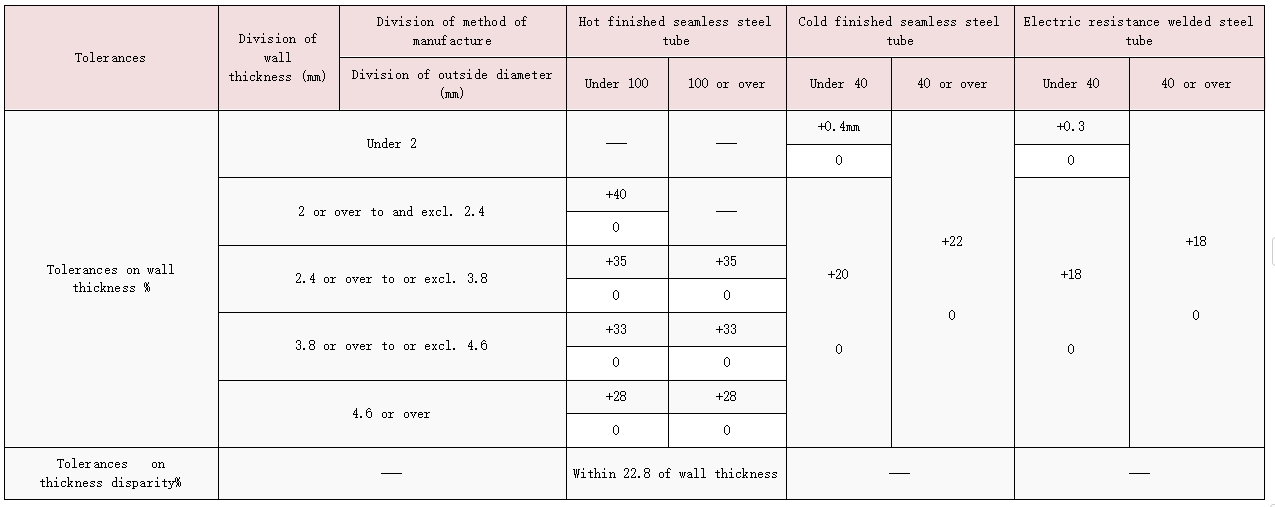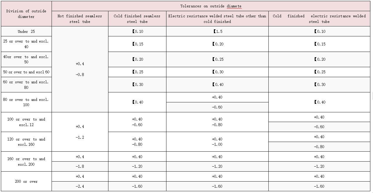 JIS G3461 Carbon Steel Pipes Dimensions Tolerance JIS G3461碳钢管尺寸公差
