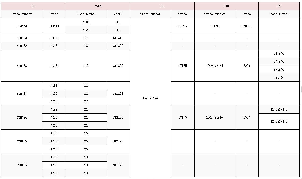 Equivalent steel grade of JIS G3462 JIS G3462的等效钢级