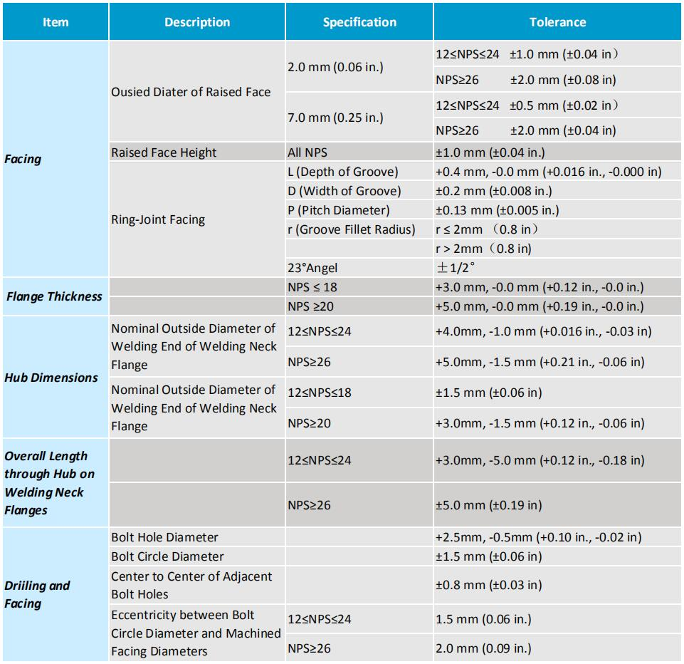 对于公称管径小于或等于NPS24的法兰,外径和法兰厚度应符合ASME B16.5的要求。对于公称管径为NPS26至NPS60的法兰,外径和法兰厚度应符合ASME B16.47对A系列法兰的要求