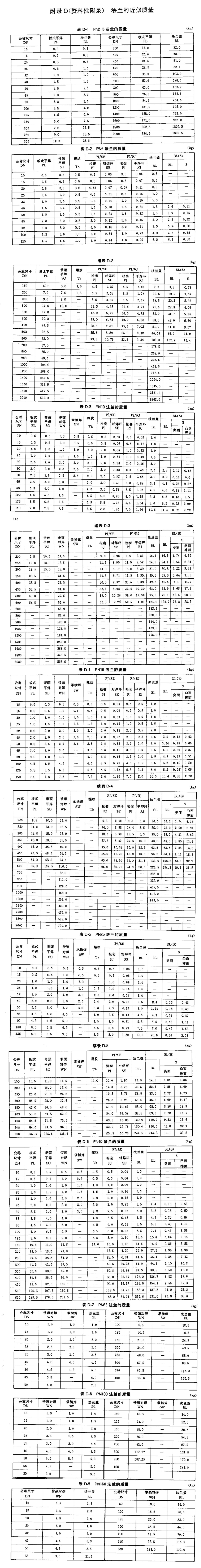 HG/T20592-2009法兰重量表图