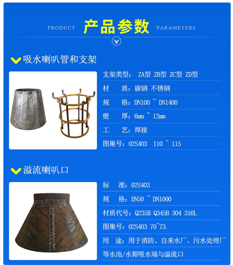 吸水喇叭口-溢流-消防水池-碳钢喇叭口