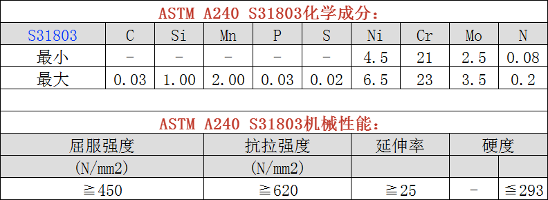 ASTM A240/A240M S31803化学及机械性能分析: